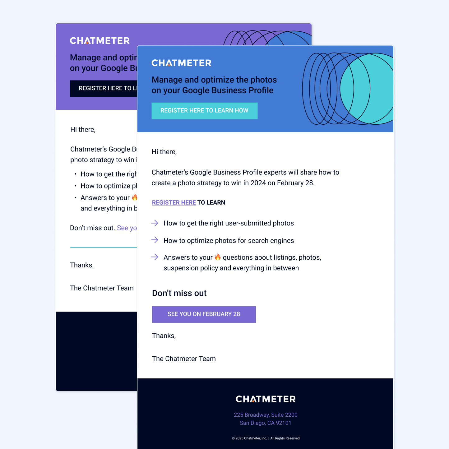 At Chatmeter I worked with the marketing and sales team to develop beautiful and effective designs. I refreshed their report and deck templates, as well as branded their new platform service, PulseAi. I developed social ads and campaigns with marketing and A/B tested them to improve our results.
